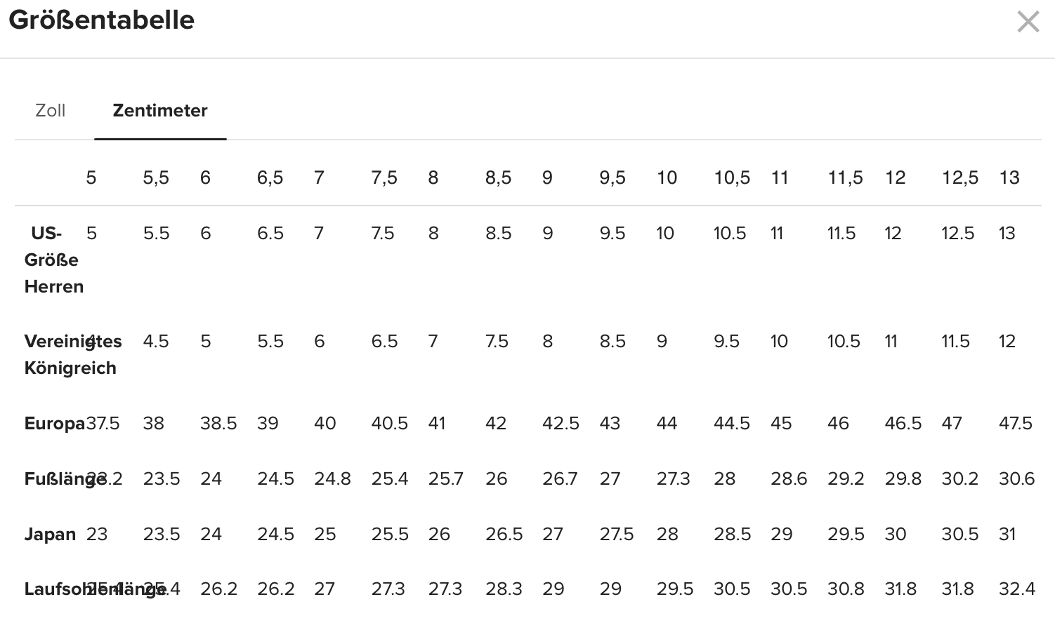Bitte beachte, dass unsere Schuhe standardmäßig auf US-Größen eingestellt sind. Nutze unsere Größentabelle, um die richtige Größe zu finden!