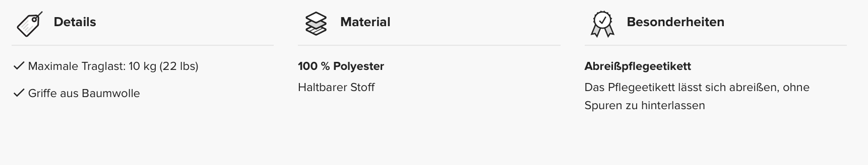 - Maximale Traglast: 10 kg